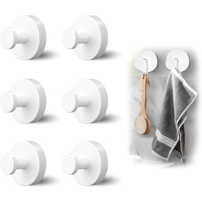 QUOBY 6-Pack Strong Suction Hooks - No Drill Bathroom Organizers | Holds Towels, Robes & Kitchen Gear