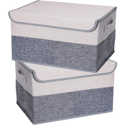 TOJUNE 2 Pack Foldable Storage Box with Lids and Handles, L40 x W28 x H26 cm, Linen Organizers