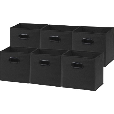 Simple Houseware 11 Inch Foldable Storage Cubes with Handle, 6 Pack, Black