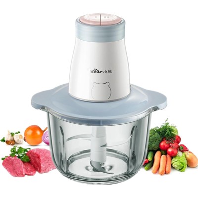 TECHBEAR Food Processor, 300W Electric Meat Grinder Food Chopper w/ 2L Dishwasher Safe Glass Bowl